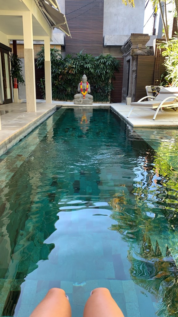 On the first trip to Bali we stayed in a hotel, the hotel was literally right next to the airport and called The Patra Bali Resort . The resort was okay but definitely a lot more dated and worn down now than the photos show on their website and booking.com so don’t be fooled. I wouldn’t personally stay here again as the food wasn’t that great and there was no proper gym, but if your on a budget or only need a night or two it’s more than fine!