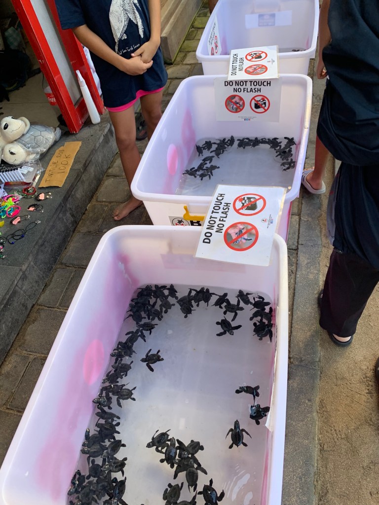 Last but not least TURTLES! π’ My favorite animal of all, (after my dogs). The one thing I had to do in Bali was release a baby turtle back into the sea. The Bali Sea Turtle Society (BSTS) is an organisation, run by local Indonesians for the conservation of endangered sea turtles. They work across the entire island of Bali with locals in different regions to protect sea turtles. β£ We released a baby turtle at the Kuta Beach Sea Turtle Conservation Centre, they don’t have a schedule of when they will release the baby turtles, its announced on the day via their Facebook page and you have to be at the centre queuing to get your ticket to release a turtle and the numbers are limited. I was watching their Facebook page that day and we rushed to get there in time on our scooter and literally got the second to last ticket of the day!
